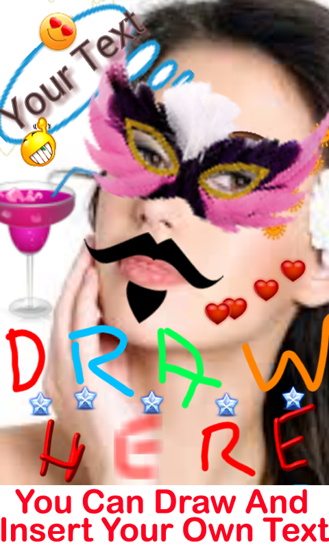 - Art Draw Button! You can do this by selecting a object from the given options and then by tapping on the photo to add it